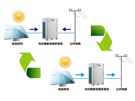 光伏发电系统不发电,主机向电网取电运行,机组相当于常规直流变频多联机。
